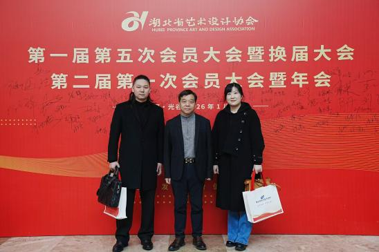 2026年1月17日下午,湖北省艺术设计协会第一届第五次会议暨换届大会、第二届第一次全员大会在武汉光谷隆重召开。威廉希尔亚洲公司副院长郑昱教授携竞赛办主任高源老师、环境设计系柯宏博老师应邀参会,与全省艺术设计领域的专家学者、行业精英共商发展大计。